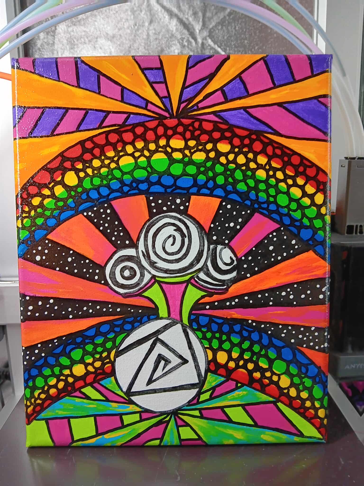 Acrylic, Paint Marker, Matte Finish on an 8x10 Wrapped Canvas.